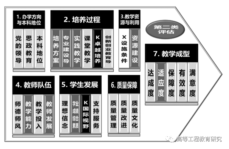 第二类仍需对影响教育教学及其质量保障的关键要素进行重点关注,引导高校进一步增强质量保障意识,建立质量保障长效机制,提高质量保障体系的完整性和有效性。其第二种适合于已参加过上轮审核评估,人才培养定位以学术型为主的高校;第三种适合于已参加过上轮审核评估,人才培养定位以应用型为主的高校;第四种适合于已通过合格评估五年以上,没有参加上一轮审核评估,本科办学历史较短的地方应用型普通本科院校。